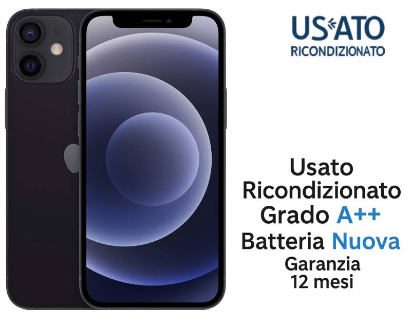 IPHONE 12 MINI 256GB RICOND. BLACK GRADO A++ GARANZIA 1Y BATT.NUOVA