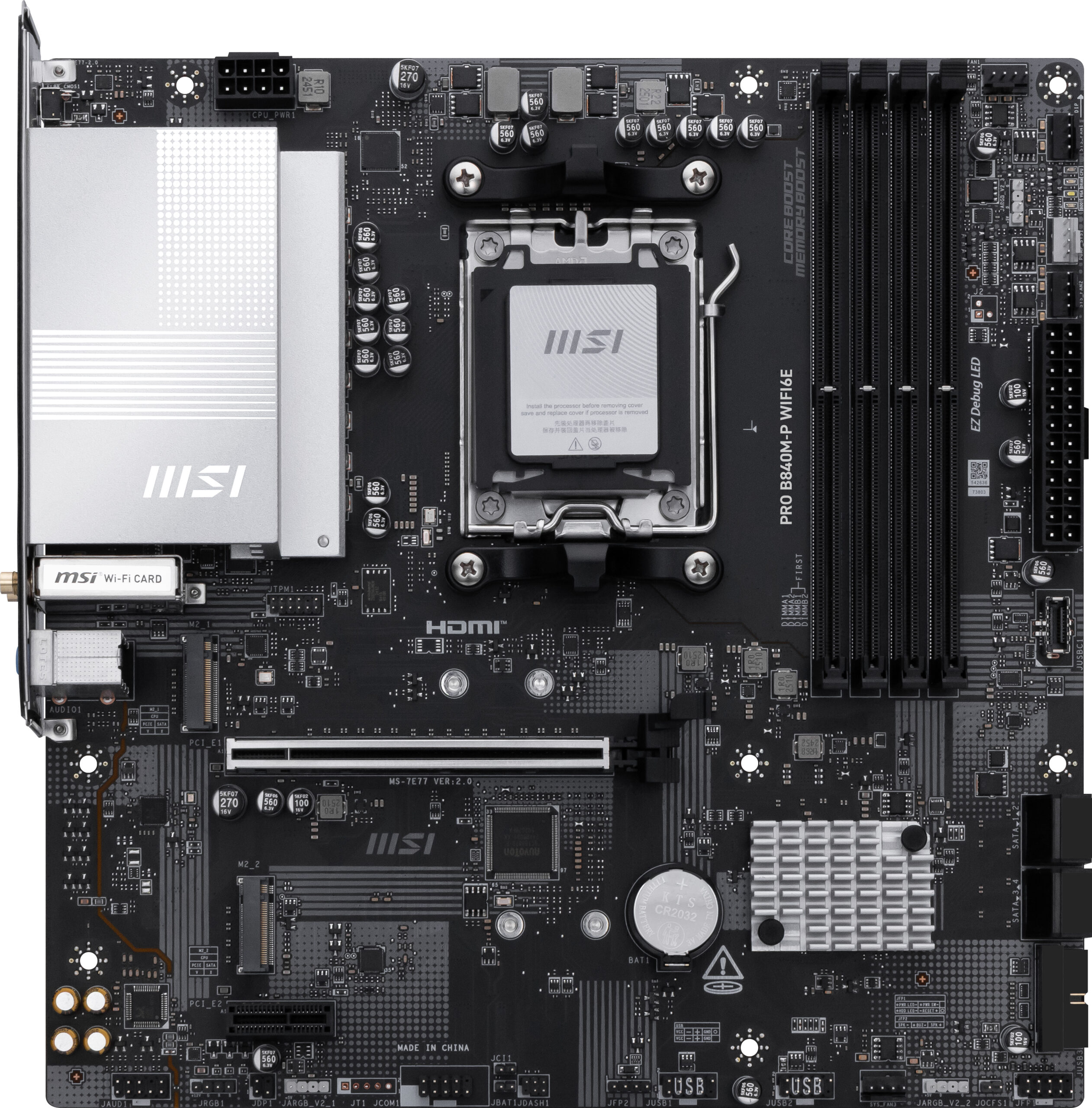 MB MSI PRO B840M-P WIFI6E AM5 4DDR5 2PCIE 3M2 3SATA 1DVI MATX